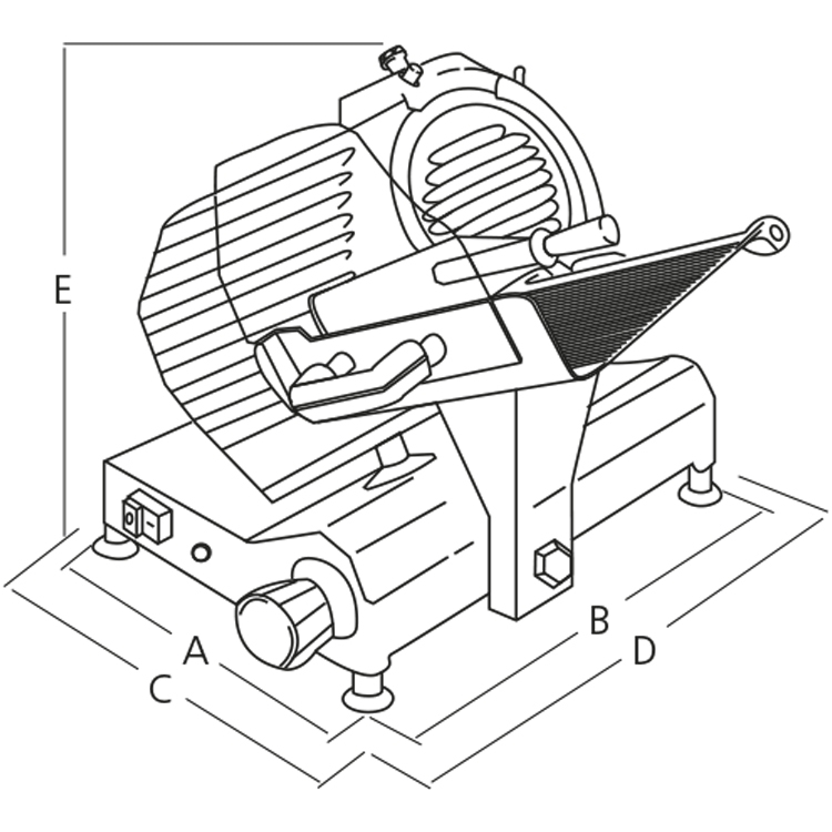 Cortadoras de fiambres de gravedad con transmisión por medio de engranajes, fabricadas con aleación de aluminio anodizado y pulido, muy robustas.