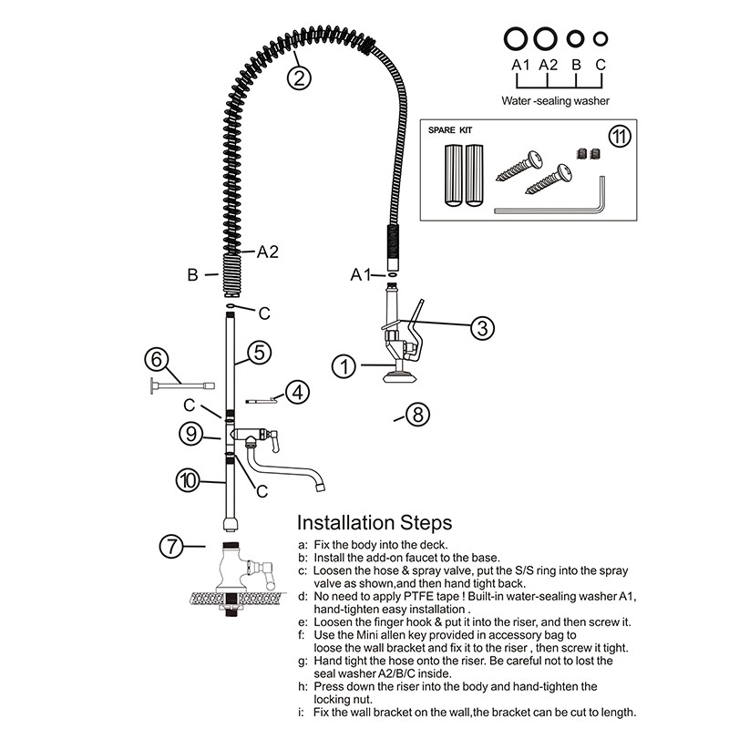 Provistos de muelle de acero inoxidable y equipados con flexible especial para resistir la alta temperatura y presión del agua.